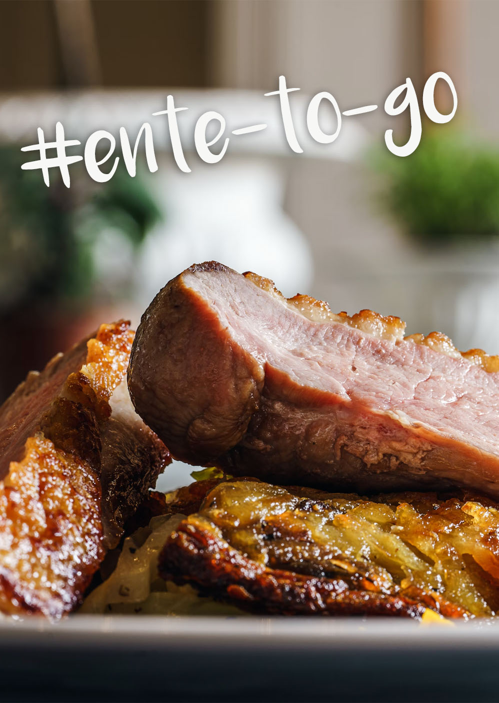 Rosa gebratene Baberieente, Brokkoli, geräucherter Wacholder, Kartoffelspeckklößchen